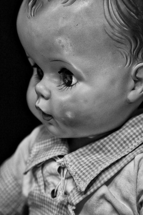 This black-and-white series uses dolls as a vehicle for storytelling, their unnervingly human-like features evoking both familiarity and unease. While many of the dolls are porcelain or life-sized, not all adhere to such lifelike characteristics; the series spans a wide range of styles and forms, inviting viewers to encounter them on varied terms.
